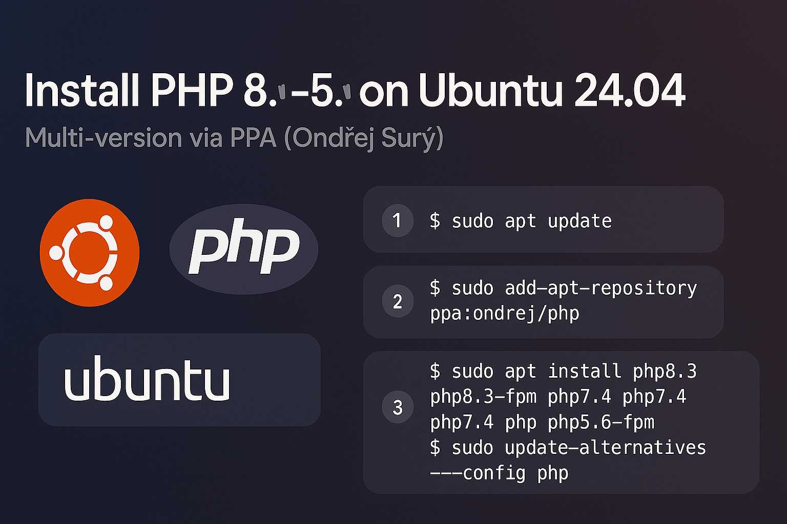 В этой статье мы рассмотрим как поставить стоковый PHP 8.3 из официальных репозиториев Ubuntu 24.04 (Noble) и параллельно держать несколько версий (включая 8.2…7.x и даже 5.6) через PPA Ondřej Surý. Разбирем варианты с Apache (mod_php и FPM) и Nginx (FPM), переключение версий для CLI, чек‑лист и блок «типовые ошибки → решения». Старые ветки (7.x/5.6) — EOL, используйте изолированно и осознанно.