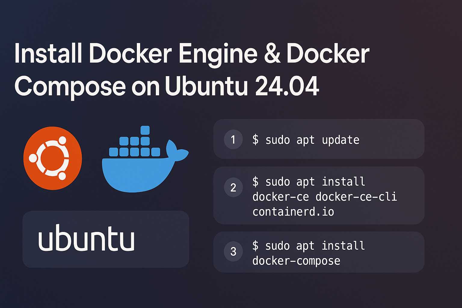 Ниже — быстрый, надёжный и лаконичный способ поставить Docker Engine и Docker Compose v2 (как плагин docker compose) на Ubuntu 24.04. Команды также подходят для 20.04/22.04 (и Debian 12 — с заменой репозитория на debian).