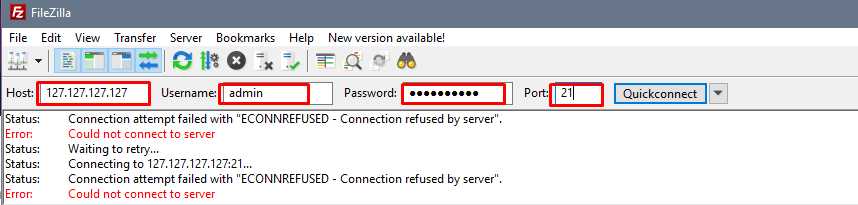Вверху FileZilla есть поля: